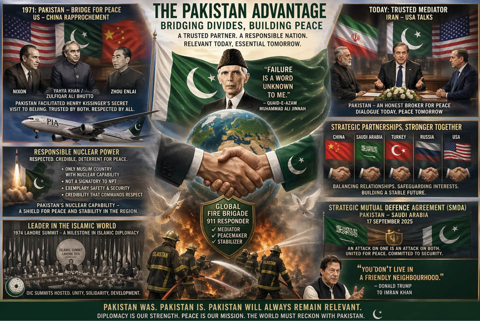 That’s the Pakistan Advantage. Acting as a Global Fire Brigade Unit – 911 Responder – to put out regional and international fires. Reason for India’s heartburn.